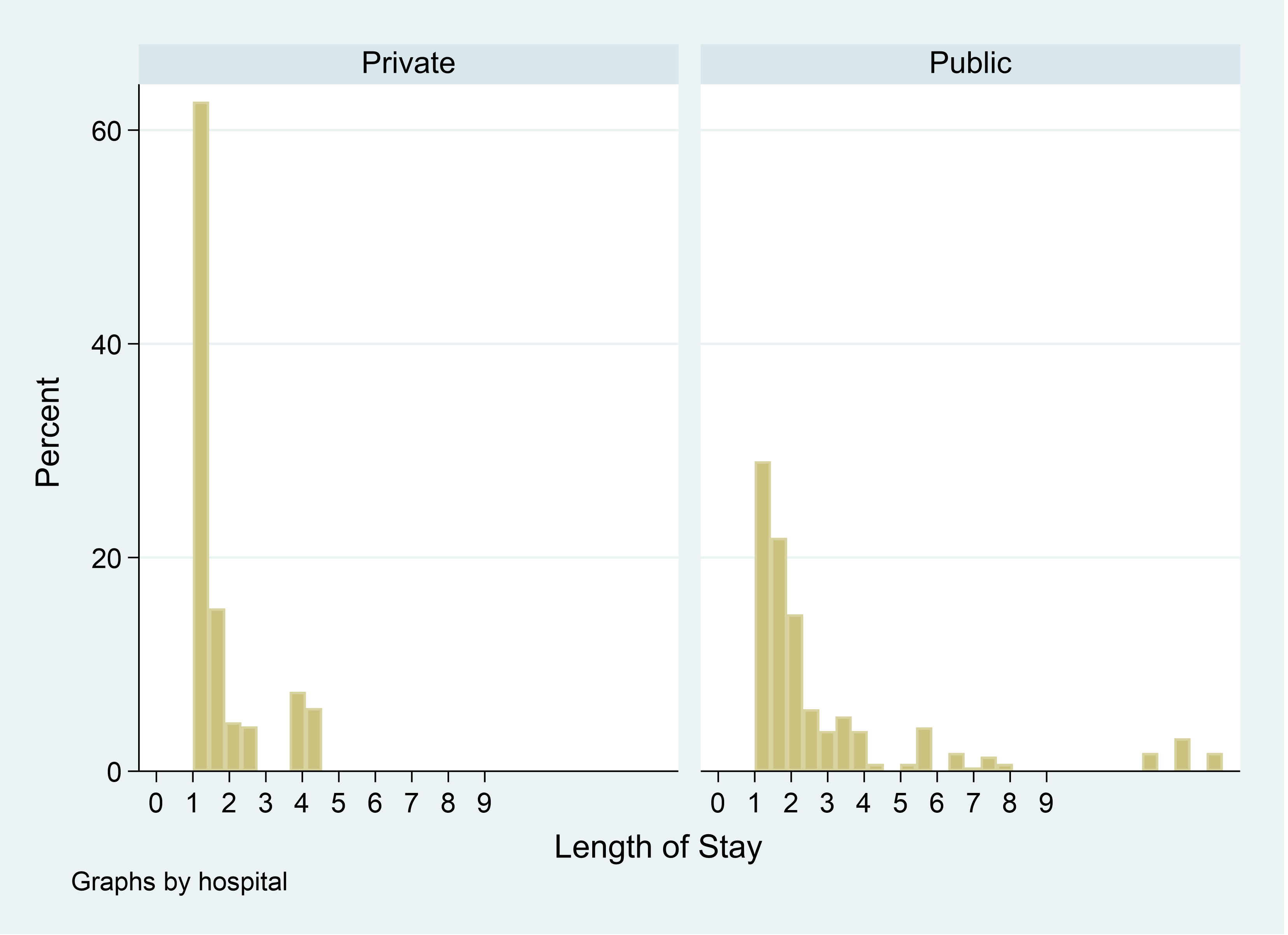 You start by first graphing the length of stay by private and public hospitals.